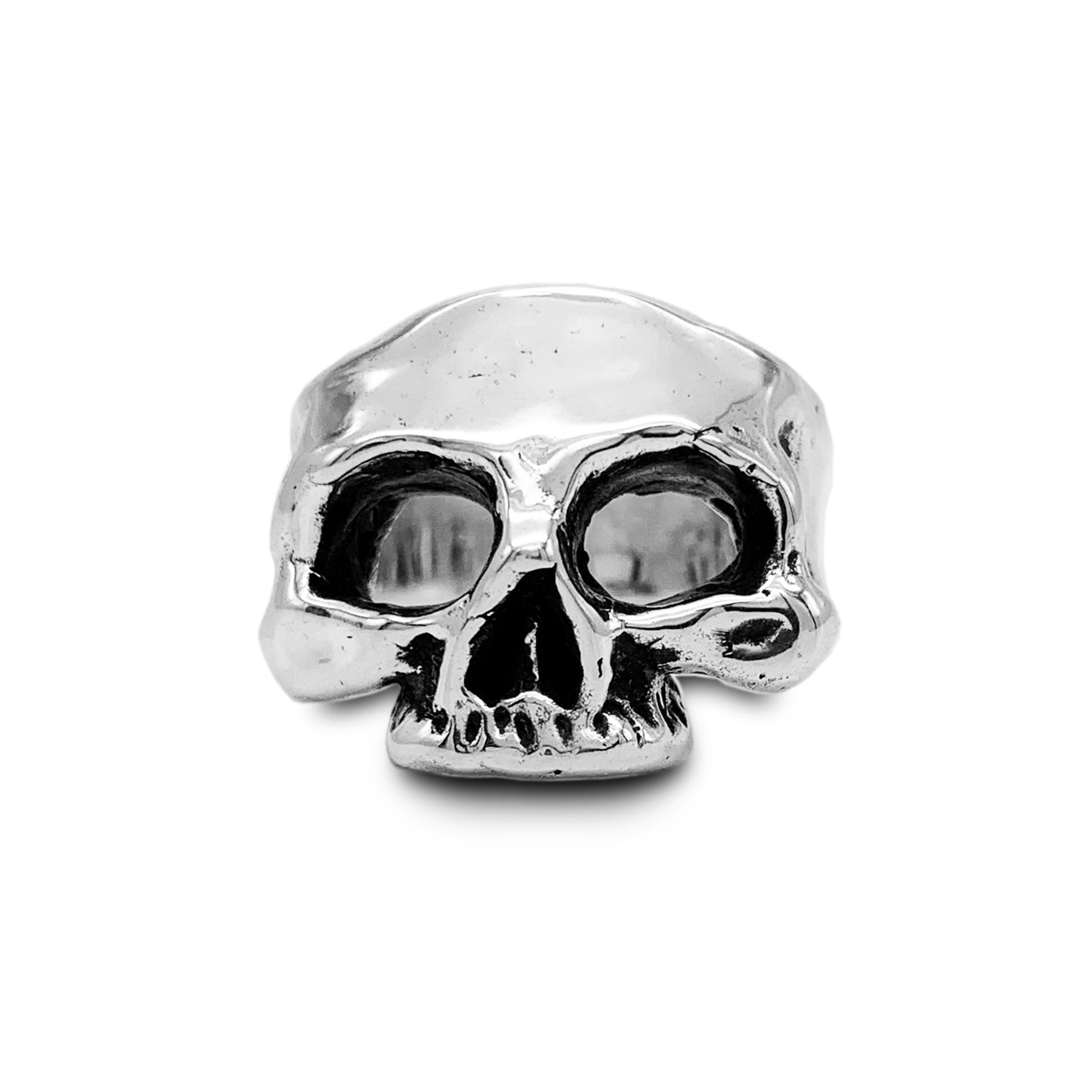 A classic skull biker ring. Not too bulky but not too small. Just the right size. Fitted specifically to your finger with quarter sizes available. Hand carved, finished, patinaed, polished, and cast in solid .925 sterling silver